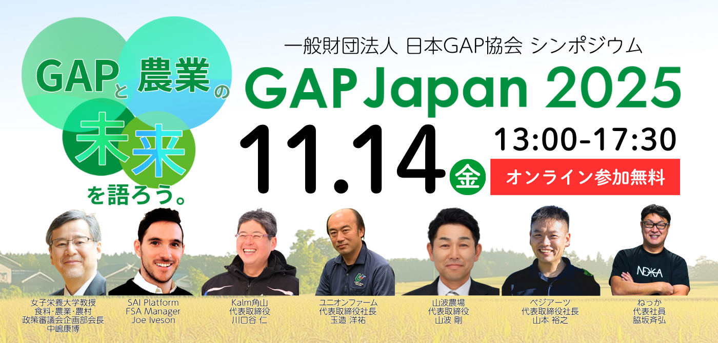 « 持続可能な農業の未来を切り拓く「GAP Japan アワード 2025」受賞者決定 | Main | 11月14日『GAPとSDGs農業の日』ロゴマーク決定! »